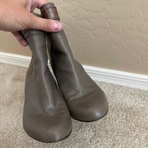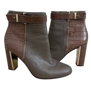Ann Taylor Taupe Brown Leather Alligator Textured Heeled Booties 7.5
