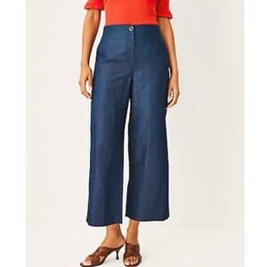 Ann Taylor Tencel Linen Chambray High Rise Wide Leg Crop Pants Women’s Size 10