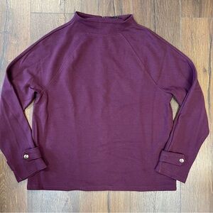 Ann Taylor Textured Mock Neck Button Cuff Top SZ LG
