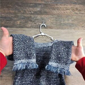Stylish textured sweater with fringe hem. Perfect for layering.