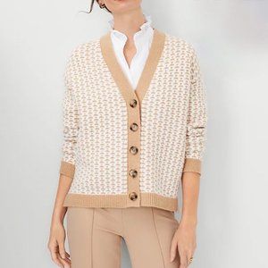Cast with a textured novelty stitch, this v-neck cardigan is the quintessential wear-with-anything sweater. Neutral colors that span all four seasons.