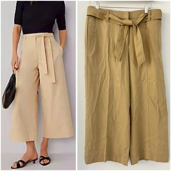 Ann Taylor The Belted Cropped Palazzo Wide Leg Pant in Toasted Nutmeg; excellent condition