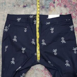 Ann Taylor The Cotton Crop Mid Rise Pineapple Pants in Navy Blue & White Size 12