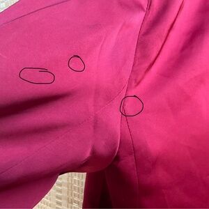 A few tiny darkened dots on shoulder. Didn’t notice until I went to take photos of the garment. See last two photos. Can’t really see if you aren’t looking for them. Doesn’t take away from overall look.