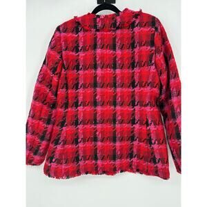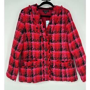 In a cozy longer length, our houndstooth tweed cardigan jacket is framed with light fringe. V-neck. Long sleeves. Button front. Front welt pockets. Lined.