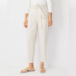 Ann Taylor The Petite Striped Belted Paperbag Ankle Pant in Linen Blend size 6 BELTED PAPERBAG ANKLE PANT IN LINEN BLEND