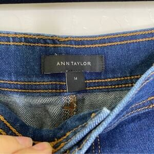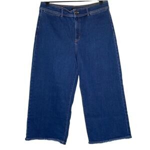 Ann Taylor The Wide Leg Dark Wash Frayed Hem Jeans 14