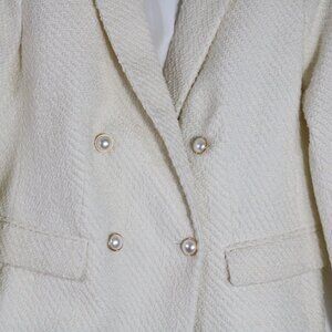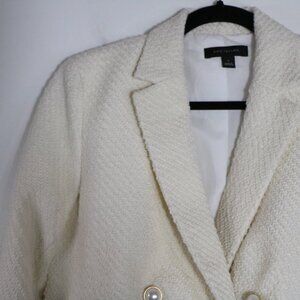 Ann Taylor The Wool Blend Tweed Double Breasted Blazer Womens 6 Winter White