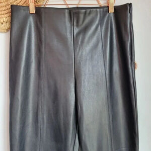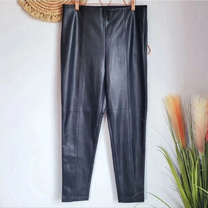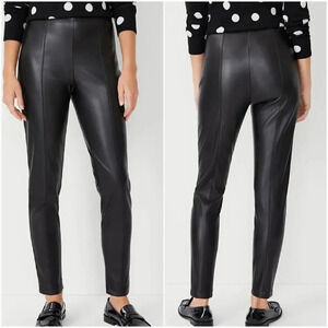 Ann Taylor, The Seamed Side Zip Black Faux Leather Legging Pants, Size Large