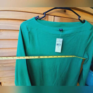 This listing is for an Ann Taylor Three Quarter Sleeve Top in Emerald Green. The lighting is off in the pictures, but the color is similar to the second picture. It's a very soft top and is still with its Tags.