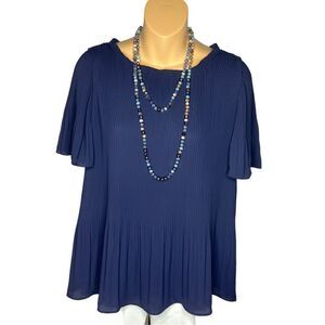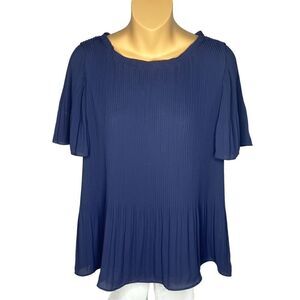 Ann Taylor Tiny Pleats Flowy Short Sleeve Blouse Top Size Medium Petite