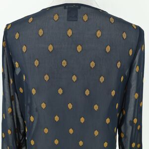 Ann Taylor Top Petites SP PS Navy Blue Sheer Blouse Gold Medallions Embroidery