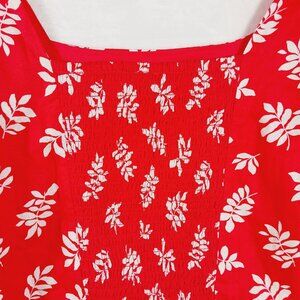 Ann Taylor, Top, Red with White Leaf Print, Square Neck, Puffed Sleeves, Smoked Panel in back, Size 8, Excellent condition, Like New, no sign of wear.