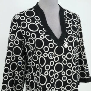 Ann Taylor Top Womens 8 Black White Embroidered Cotton Tunic Sequins Side Zip