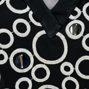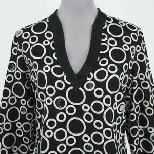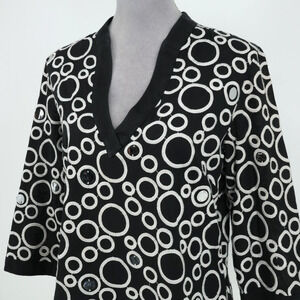 Ann Taylor Top Women's 8 Black White Embroidered Cotton Tunic Sequins Side Zip