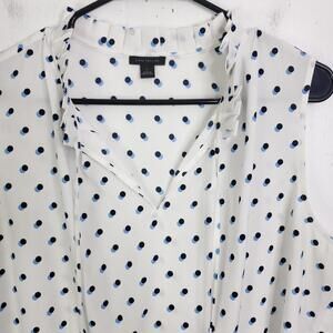 Ann Taylor Top Womens L Polka Dot Ruffle Collar V Neck Tank Lightweight Shell
