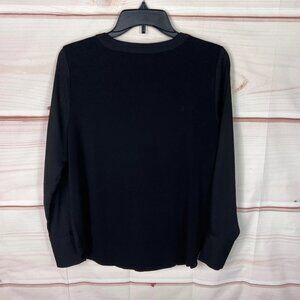 Ann Taylor Top Womens PM Black Long Sleeve Blouse Knit Woven V-Neck Pullover