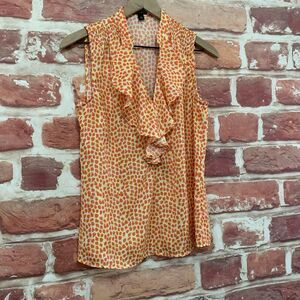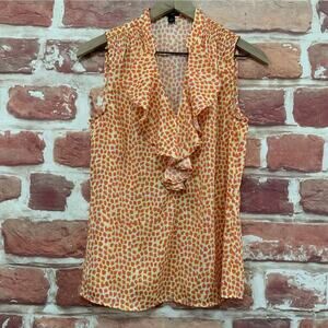 Ann Taylor Top Women's Small Orange Yellow Multicolor Abstract Ruffle Shirt