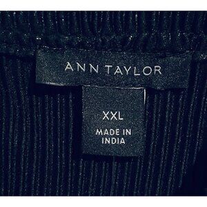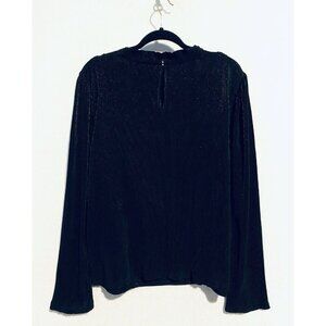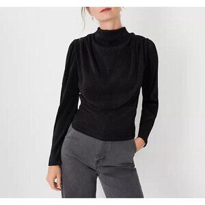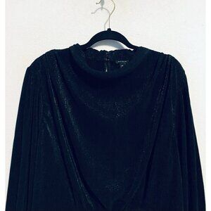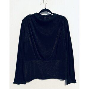 Ann Taylor Top Womens XXL Black Metallic Draped Cowl Neck Pleated Minimalist