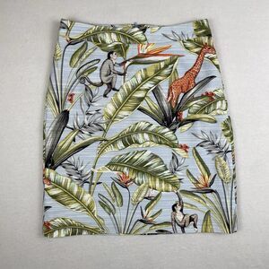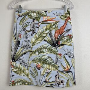 Ann Taylor Tropical Safari Pique Skirt Mini Blue Monkey Giraffe Vacation- 0p