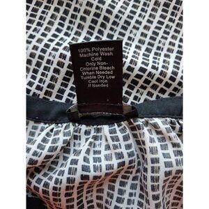 Ann Taylor Tunic Blouse L Black White Geometric V Neck 3/4 Sleeve Lagenlook