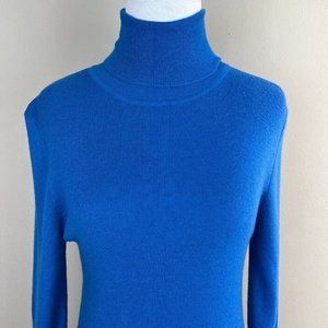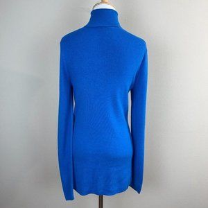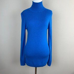 Ann Taylor Turtleneck Sweater L Blue Cashmere Blend Long Sleeve Lightweight Slim