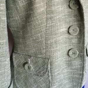 Covered buttons, fitted, front pockets, very flattering and versatile, size 4