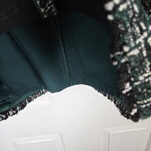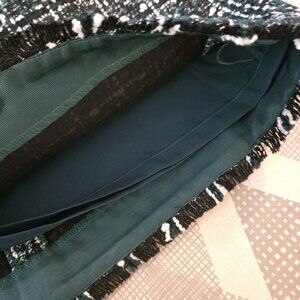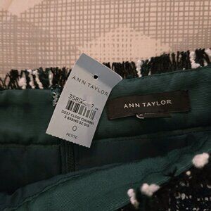 Ann Taylor Tweed Skirt Size 0 Petite Green Black Pencil Career Holiday Sequins