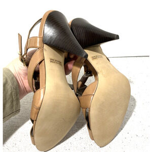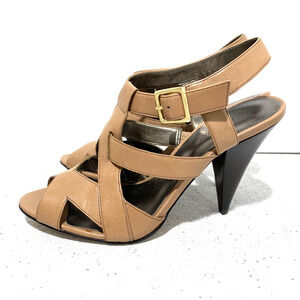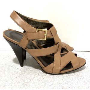 Ann Taylor US 7M nude leather strappy high heel sandals cone heels casual dressy
