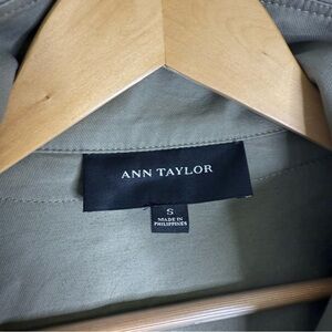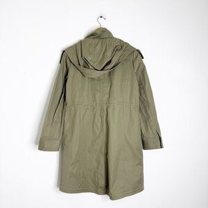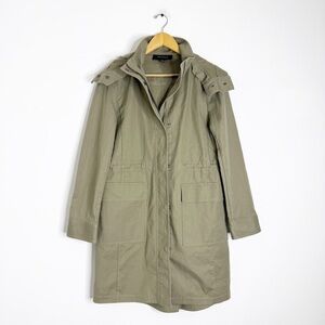 Keywords: Ann Taylor olive parka, utility jacket, cotton twill coat, long field jacket, military style anorak, casual fall jacket, lightweight trench, women’s size small