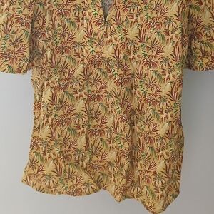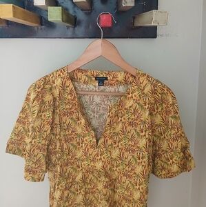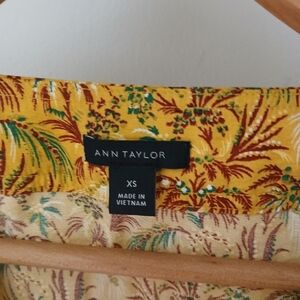Ann Taylor V Neck Popover Blouse. Size xs. Yellow with a tropical bamboo tree pattern. Rayon blend. Flutter sleeve. Workwear, travel, casual. In nice, preowned condition. No flaws noted.