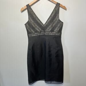 Ann Taylor VTG Dress Black Silk Beaded Sleeveless Sheath Evening Whimsygoth 2P