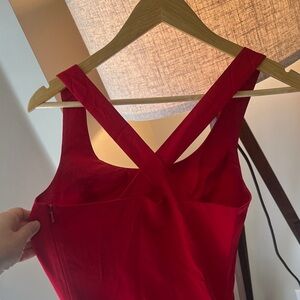 A sexy vintage Ann Taylor red silk mini dress with sleeveless tank design. Perfect for stylish outings.