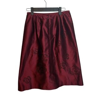 Ann Taylor Vintage Burgundy Beaded Floral Silk Skirt