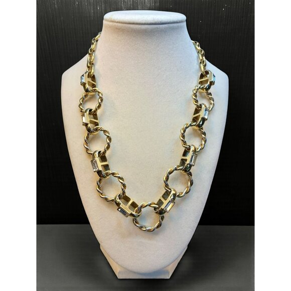 An elegant vintage gold-tone Ann Taylor necklace featuring twisted rope chain links and dazzling rhinestone accents. A timeless piece that enhances formal and everyday looks.