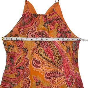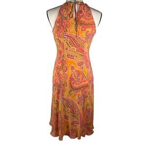 Ann Taylor Vintage Paisley silk chiffon Halter Midi Dress Orange Pink women’s 4