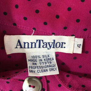 Ann Taylor Vintage Pink Polka Dot Button Silk Top
