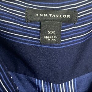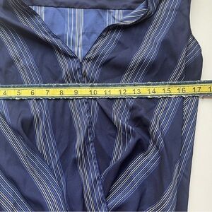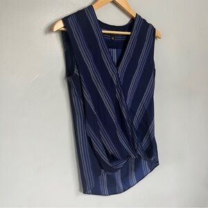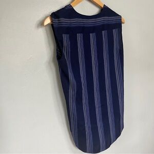 Ann Taylor V-neck Loose Fit Sleeveless Stripe Blouse Top Blue XS X-Small