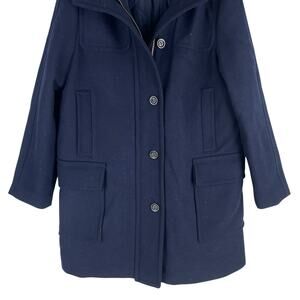 Ann Taylor Weekend Collection Faux Fur Trim Wool Duffle Coat Blue Size M