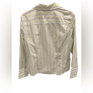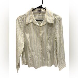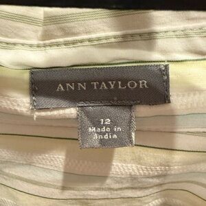 Ann Taylor Weekend Collection Striped Drop Shoulder Shirt Green White Stripe 12