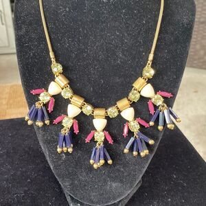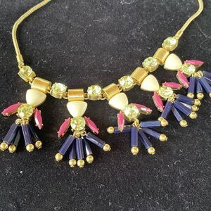 Ann Taylor Whimsical Statement Necklace Gold Tone Rhinestone People Children