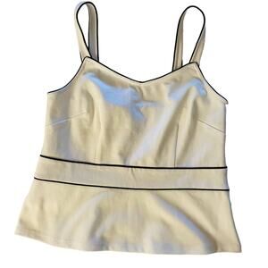 Ann Taylor White Black Piped Pique Ponte Tank, Sz L