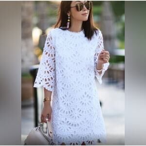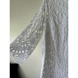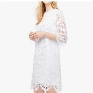 Ann Taylor White Eyelet 3/4 Sleeve Scalloped Hem White Cotton Dress Size 8