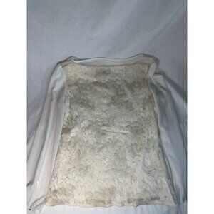 Ann Taylor White Floral Lace Blouse With Sheer Sleeves Size L Cottage Career