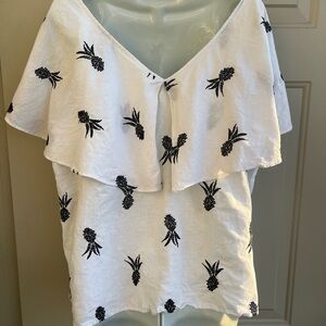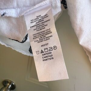 Ann Taylor White Flutter Sleeve Black Embroidered Blouse Linen Blend Size XXL