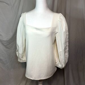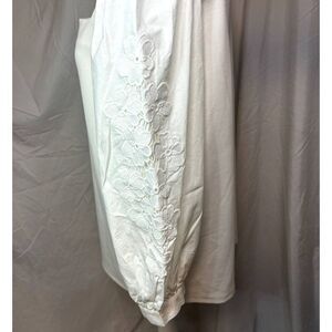 The Ann Taylor White Linen Floral Eyelet Square Neck Blouse is a beautifully crafted and elegant piece for women. Like New.