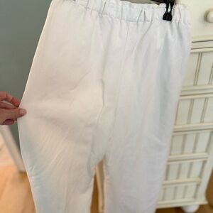 Ann Taylor Stylish white linen pant! EUC size Medium Petite. These pants are fully lined. Two front pockets. Pull on style pants with a wide leg structure. Beautiful linen fabric elevates your summer look! Pants have been worn less than a handful of times. No stains, rips, pulls or picks! Very forgiving sizing on these pants.