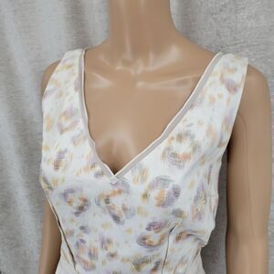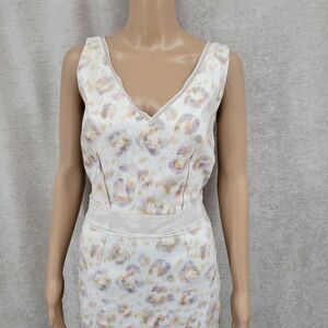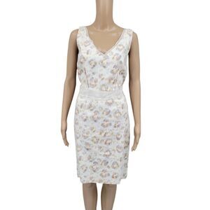 Ann Taylor White Linen Blend Sheath Dress Abstract Animal Print Pattern Classic