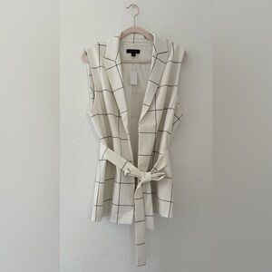 NEW ANN TAYLOR $159 IVORY WINDOWPANE LONG BELTED VEST SZ 12