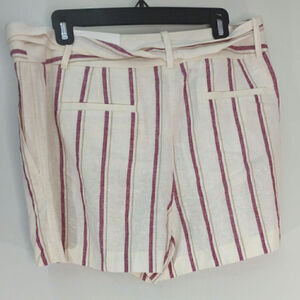 Ann Taylor White & Red Striped Belted Shorts Pocket Casual Linen Size 12 NWT